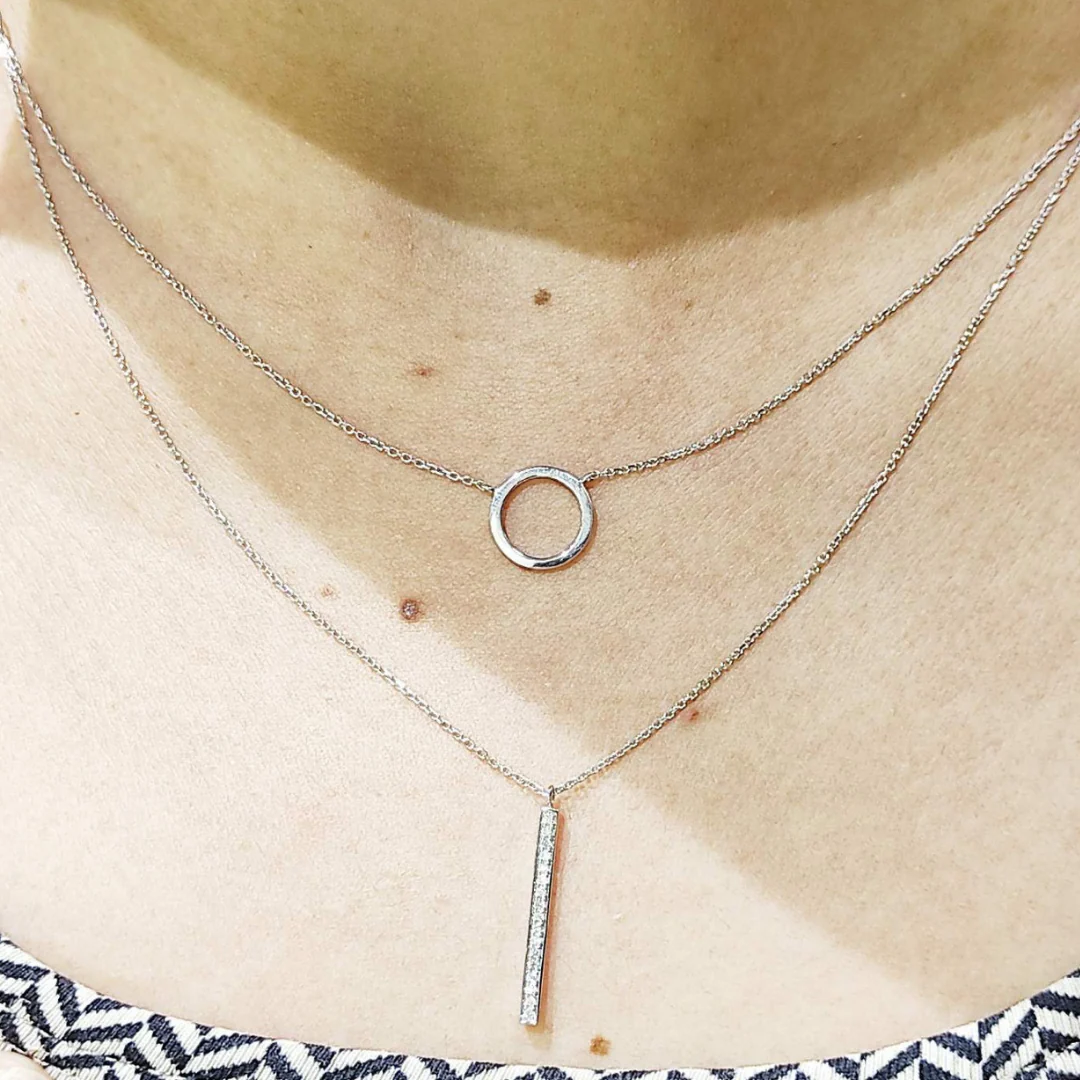Layered necklaces are so popular nowadays. Perfect for every occasion. This set includes a round choker and a dangling pendant beautifully studded with diamonds.